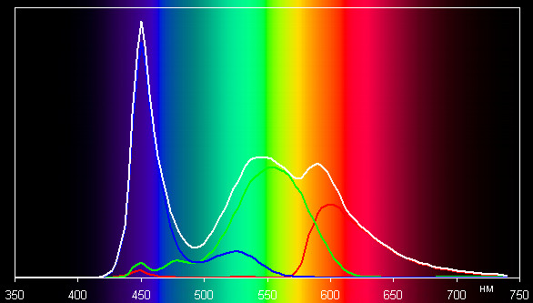 Видимо, светофильтры матрицы подмешивают компоненты друг к другу. Спектры это подтверждают: