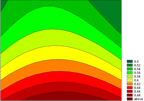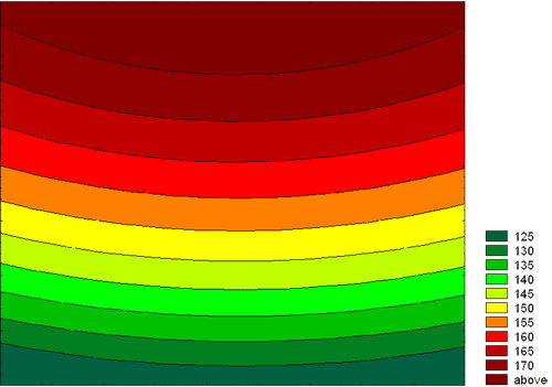 Поверхность, построенная по значениям контрастности. Изолинии через 5 единиц