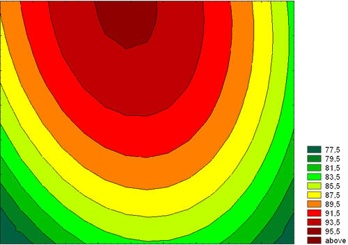 Поверхность, построенная по значениям яркости белого поля. Изолинии через 2 кд/м2