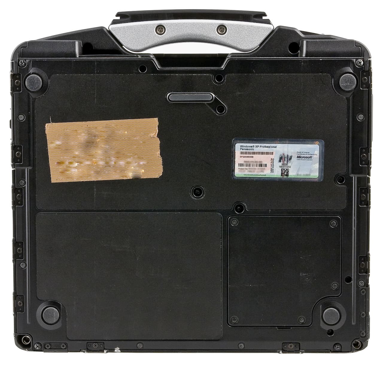 Ноутбук не очень сильно отличается от своих незащищенных собратьев по длине и ширине, но примерно вдвое толще, чем обычный ноутбук. Весит CF-30 около четырех килограмм — это очень много для ноутбука, особенно такого размера. Большой вес, думается, стал одной из причин, почему корпус снабжен ручкой для переноски.