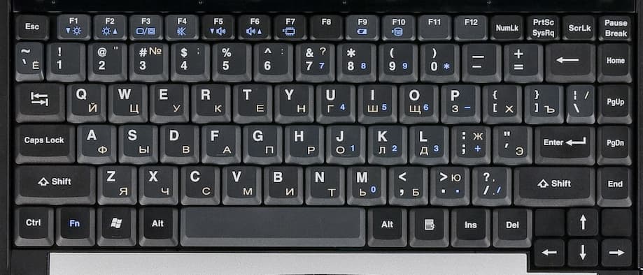 Раскладка клавиатуры практически оптимальная для ноутбуков вообще, без всяких скидок. Все клавиши на месте, ctrl в левом углу и очень удобен для различных сочетаний, большие shift, отдельно вынесенный курсорный блок, клавиша del рядом с ним — очень удобно! Теоретически можно предположить, что del можно нажать вместе с «влево», если работать в перчатках, но у меня такого не случалось, а пользоваться этими клавишами при работе было чрезвычайно удобно.