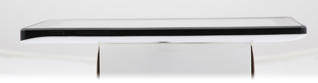 На боковых гранях устройства находятся кнопки включения питания и регулировки громкости, а также пять разъемов — для зарядного устройства, Micro-USB, видеовыход HDMI, слот для карт SD, аудиовыход для подключения наушников со стандартным «миниджеком» диаметром 3,5 мм.