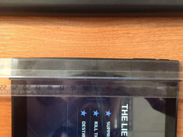 Лицевая поверхность экрана выполнена в виде стеклянной пластины с зеркально-гладкой поверхностью, устойчивой к появлению царапин. Судя по яркости отраженных объектов, антибликовые свойства экрана хуже, чем у Google Nexus 7 (2013) (далее просто Nexus 7). Для наглядности приведем фотографию, на которой в выключенных экранах обоих планшетов отражается белая поверхность (Pipo P4 — слева, далее их можно различать по размеру):