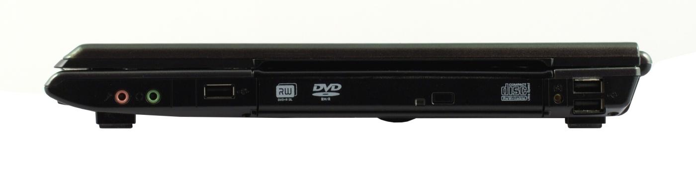 На правой грани корпуса расположены аудиоразъемы, еще один порт USB. Далее идет оптический привод, а за ним расположены еще два порта USB.