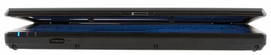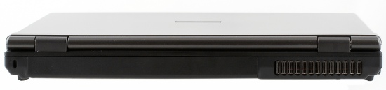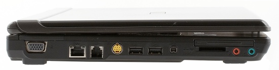 На левой грани (слева направо) расположены VGA-выход на внешний монитор, порты модема и сети, ТВ-выход, еще два порта USB, порт FireWire, универсальный картовод, слот ExpressCard и аудиоразъемы.