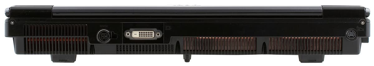 Почти вся задняя стенка отдана под решетки вентиляции, однако разъемы здесь и есть — штекер для шнура питания и цифровой выход DVI, а в углу расположился видеовход S-video (!).