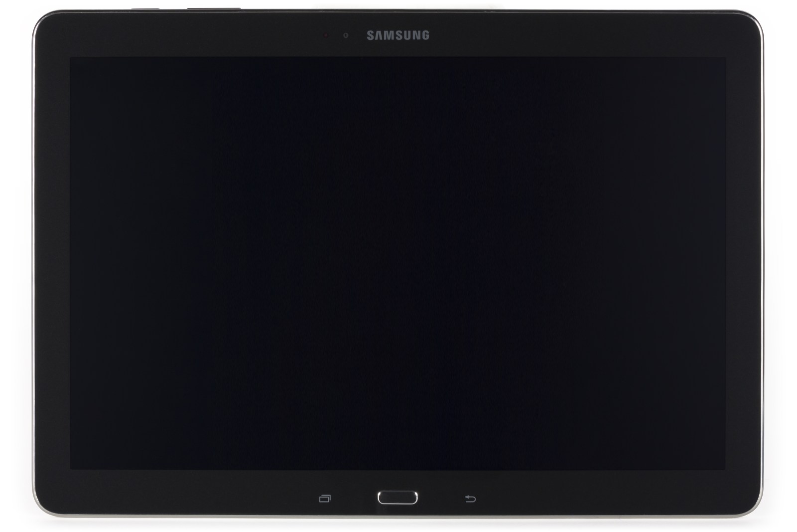 Диапазон регулировки яркости у данного экрана очень широкий, а антибликовый фильтр весьма эффективный, что позволяет с комфортом пользоваться планшетом как ясным днем на улице, так и в полной темноте. При этом пользователь избавлен от необходимости вручную регулировать яркость, так как соответствующая функция отлично справляется с данной задачей, способствуя вдобавок сохранению заряда аккумулятора. К достоинствам также относятся эффективное олеофобное покрытие, отсутствие мерцания и воздушного промежутка в слоях экрана, охват sRGB, хороший цветовой баланс и возможность выбора одного из трех профилей цветокоррекции. Традиционно для современных (на матрицах IPS) планшетов Samsung разочаровывает сильное высветление черного цвета даже при не очень большом отклонении взгляда от перпендикуляра к поверхности экрана и плохая равномерность черного поля. В итоге экран не очень подходит для просмотра кино (особенно с темными сценами), но указанные недостатки вряд ли будут хоть как-то сказываться при работе с текстом, в играх и т. д.