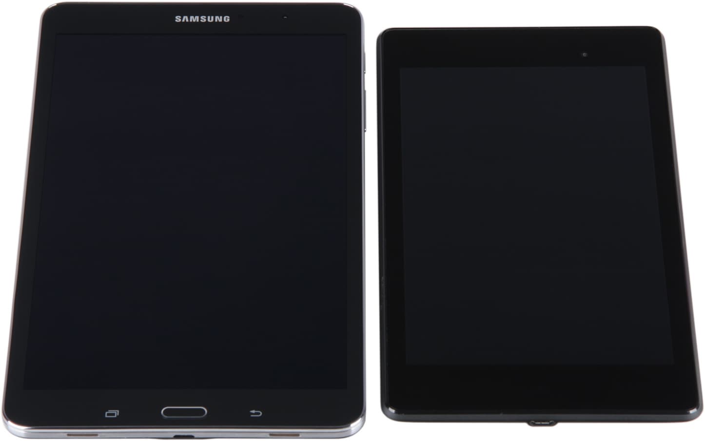 Для оценки габаритов приведем сравнительные фотографии Samsung Galaxy Tab Pro 8.4 и Google Nexus 7 (2013):