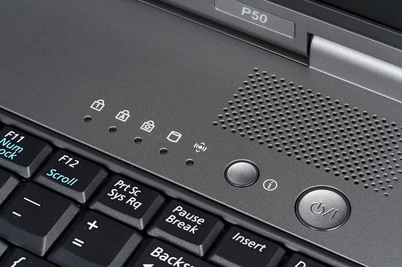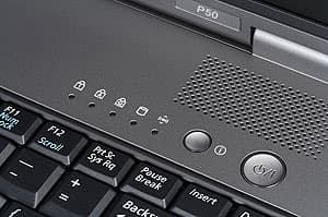 Два основных индикатора (заряда батареи и состояния ноутбука) расположены слева в передней части корпуса.