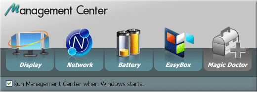 Доступ к утилитам может осуществляться через интегратор — Management Center. Утилиты достаточно стандартны по функциональности, но обладают весьма красочным и наглядным интерфейсом, хотя и несколько пострадавшим при переводе на русский язык. Назначение Battery Manager 2.0 понятно из названия, Network Manager позволяет создавать профили сетевых подключений, EasyBox — конфигурировать систему из-под ОС Windows.