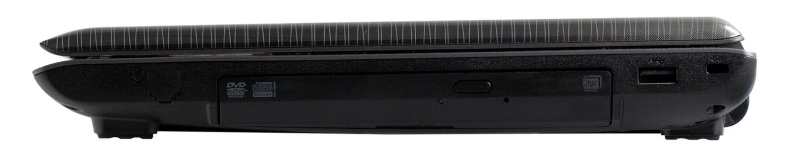 Ноутбук хорошо выглядит с любого ракурса, а утолщение на боковой грани — это ни что иное, как оптический привод. Этот компонент, уже действительно не обязателен даже для крупногабаритных моделей (разве что ради поддержки Blu-ray). А для ноутбуков с размерами экрана от 14 и меньше — тем более. Однако есть достаточно много пользователей, для которых наличие DVD-привода в ноутбуке желательно и воспринимается как преимущество. Ноутбук достаточно легкий: 2,26 кг и компактный: 24x34 см при толщине корпуса в пределах 3-3,5 см.