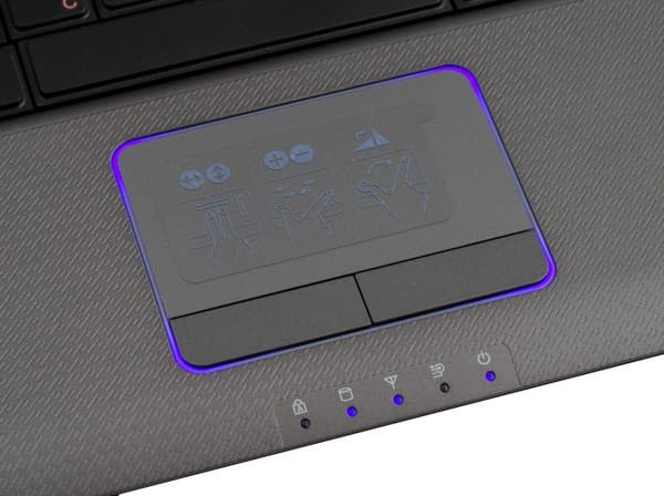 Тачпад поддерживает функцию мультитач, имеет приятное, в меру шершавое покрытие, раздельные кнопки нажимаются четко. Оригинальный дизайнерский штрих: контурная подсветка, включающаяся во время использования тачпада. Но свет достаточно неяркий, поэтому даже при минимальном фоновом освещении не отвлекает.