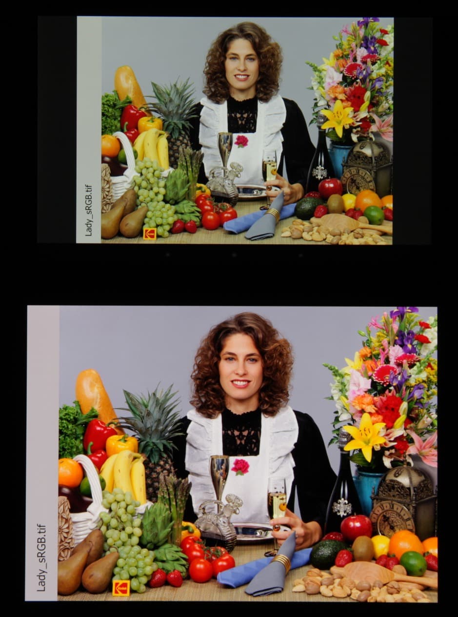 Отметим отличную равномерность яркости и цветового тона белого поля. И тестовая картинка (в режиме Основной):