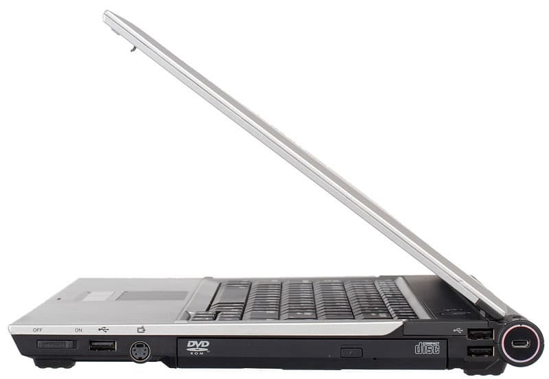 Внешне ноутбук выглядит довольно просто, но при этом весьма ярко. Эффектность корпусу придает задняя часть, выполненная в виде трубки, существующей как бы независимо от остального ноутбука. Основную часть этой трубки, как у многих современных ноутбуков, занимает аккумуляторная батарея, рядом находится разъем для замка Кенсингтона, а торцы ее отведены под разъем для подключения питания и новый для меня разъем Small SIO Connector. В остальном — все предельно строго — серебристая крышка, которую мне не удалось прогнуть настолько, чтобы на матрице появились искажения, и черное днище.