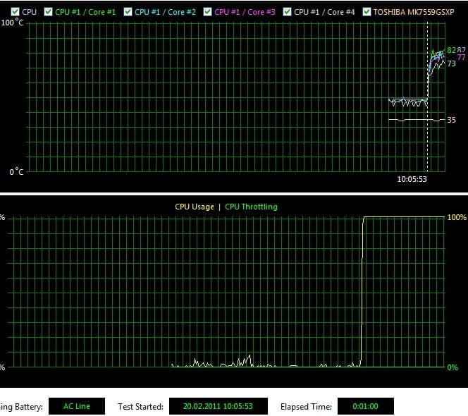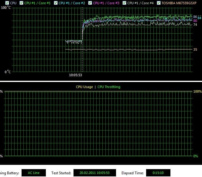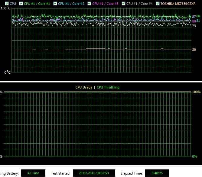 Кстати, если говорить о частотах. Hewlett-Packard DV7 преподнес в этом плане приятный сюрприз (хотя возможно, что жарким летом все будет не столь радужно). Процессор, при условии хорошей системы охлаждения, может неограниченно долгое время работать на максимальной частоте Turbo Boost 2,6 ГГц, так что он вполне способен продемострировать более высокий уровень производительности, чем в соответствии со стандартными спецификациями. Конечно, нет никаких гарантий, что летом система охлаждения будет справляться, а если нет, то уровень реальной производительности относительно настольных систем может оказаться существенно ниже, чем в наших тестах. Поэтому наличие грамотной системы охлаждения в ноутбуке с новым мобильным процессором Core i7 выходит на первый план.