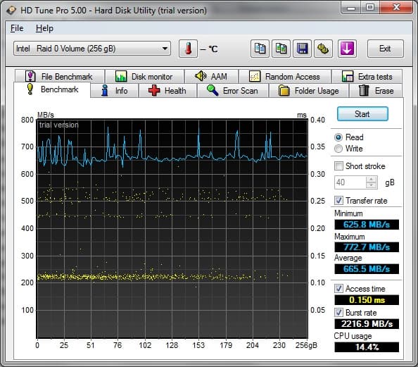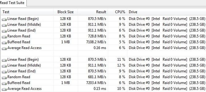 Кстати, из-за особенностей работы SSD мы не смогли провести некоторые тесты. Дело в том, что подсистема хранения данных — это довольно чувствительное место ОС Windows, и заставить систему запуститься в нестандартной конфигурации — нетривиальная задача. А уж со столь сложным бутербродом, как собственный проприетарный RAID, — и вовсе практически невозможная. Поэтому, увы, программу тестов пришлось сократить.