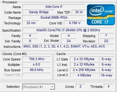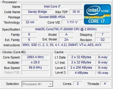 | Процессор | Intel Core i7-2640M (2,8 ГГц, разгон до 3,5 ГГц) | |
