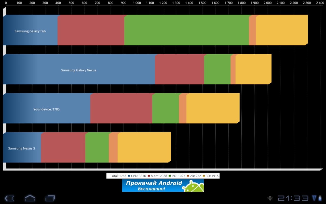 В Quadrant Standard планшет показал все-таки недостаточно высокий результат: 1785 баллов.