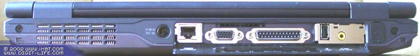Теперь немного о недостатках. Кнопка извлечения трея DVD/CD-RW драйва утоплена (справедливо — защита от случайного нажатия), а вот расположенный рядом индикатор активности выступает, поэтому при работе "вслепую" я регулярно пытался нажать именно на него. Впрочем, к этому можно привыкнуть. А вот что мне непонятно — так это отсутствие инфракрасного порта, тем более, что беспроводная сеть предлагается только как опция в виде карты расширения PC card. Мелочь, но иногда полезно иметь средство беспроводной связи с телефоном или принтером.