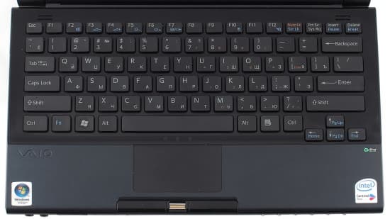 Клавиатура на Sony VAIO TZ оказалась приятным сюрпризом. Обычно из-за небольшого размера корпуса клавиатуру приходится ужимать, сокращая количество, а также вертикальный размер некоторых клавиш. И практически всегда из-за этого с клавиатурой очень неудобно работать.