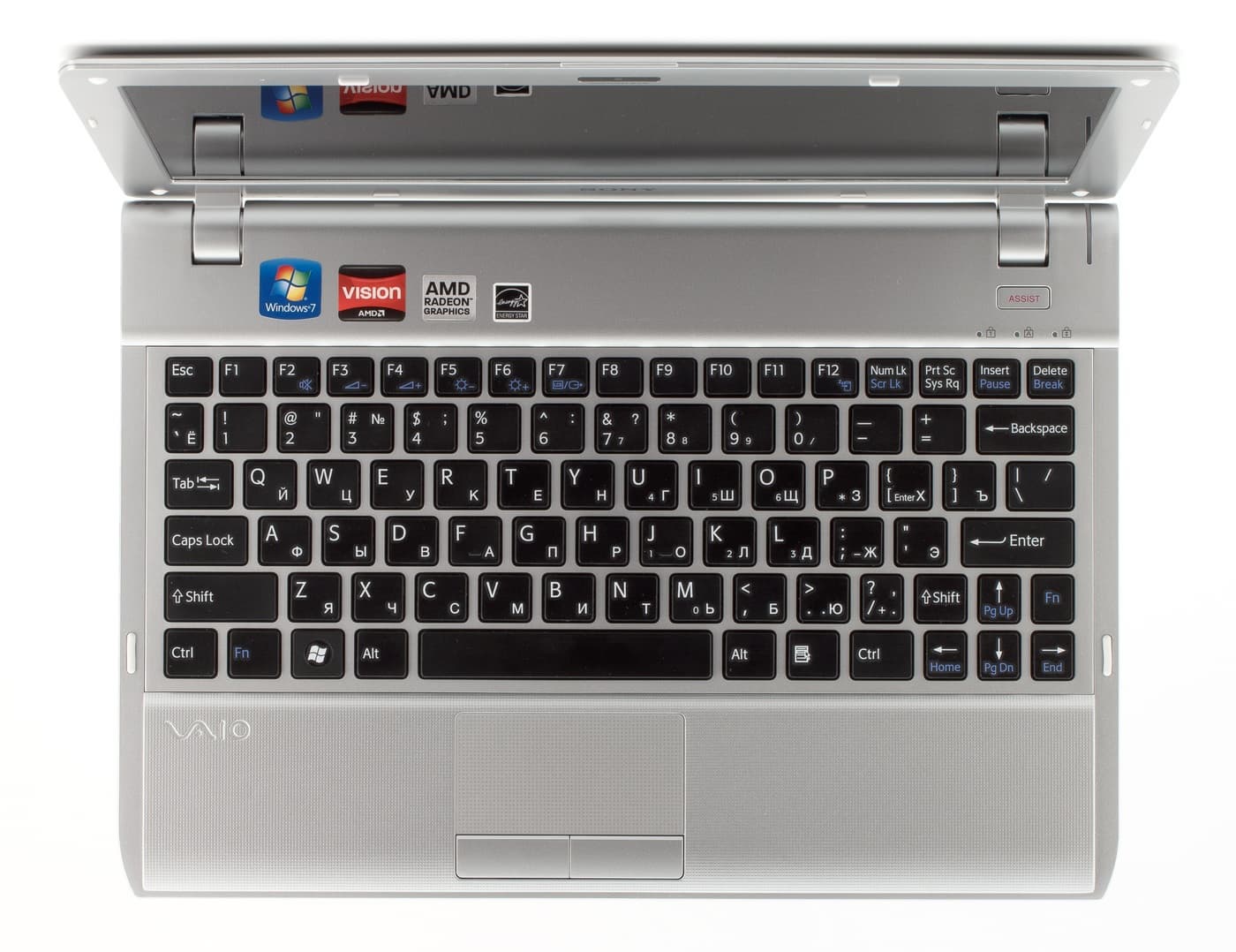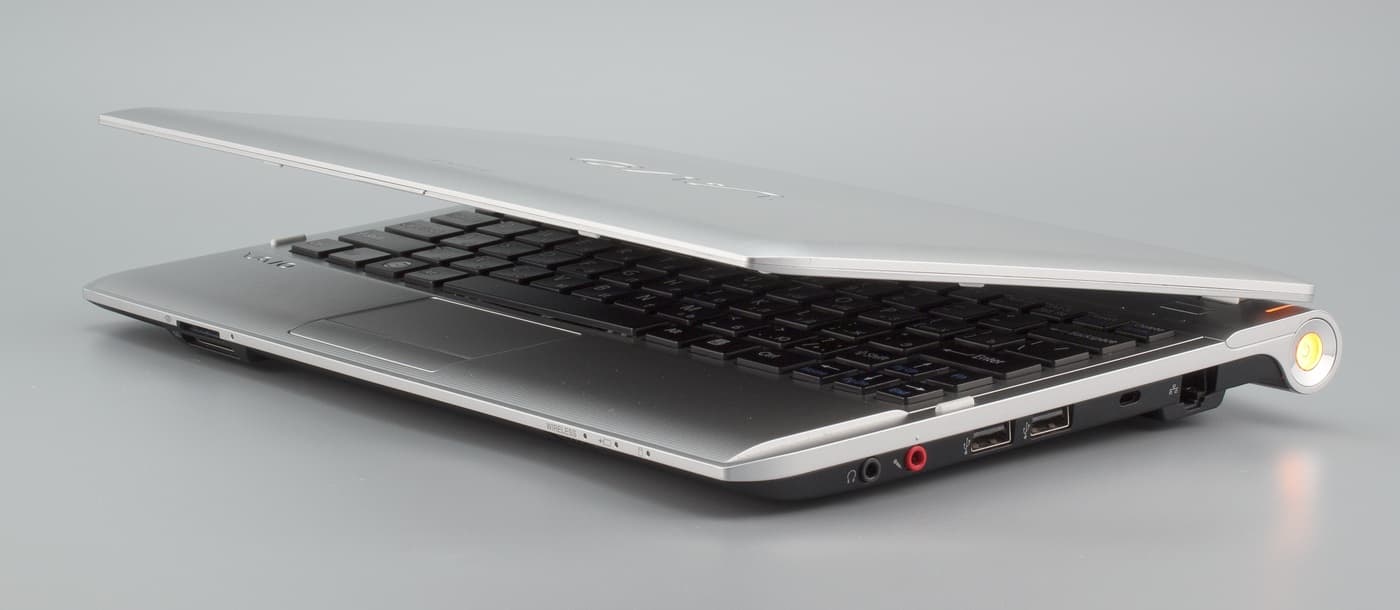 Как и в других ноутбуках Sony, кнопка светится зеленым, когда ноутбук работает, и мигает оранжевым, когда он в режиме сна. Закрытая крышка ее, разумеется, не перекрывает, ночью она будет моргать, освещая всю комнату. При этом, что самое смешное, когда сидишь перед ноутбуком, ее не видно. Другими словами, чтобы посмотреть, уснул ноутбук или еще в процессе, приходится заглядывать сбоку.