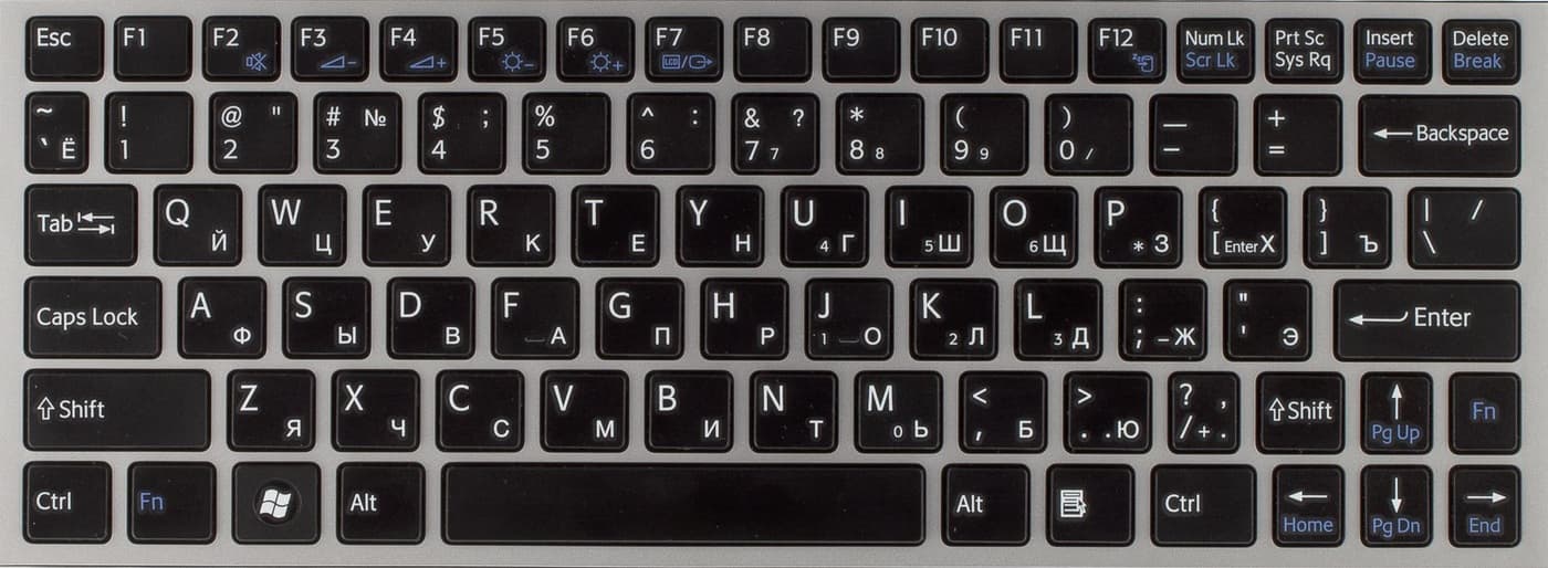 Традиционно, некоторые функции по управлению системой можно реализовать через сочетания с кнопкой Fn. Здесь в виде сочетаний сделаны не только системные функции, но и клавиши Home/End/PgUp/PgDn, а также Pause с Break (впрочем, как раз эти клавиши используются нечасто).