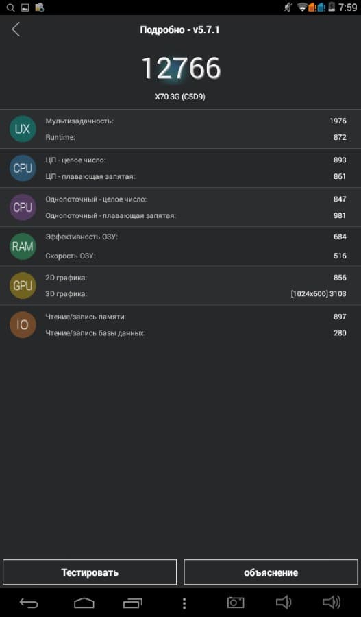 Результат Antutu после обновления фирменного лончера вырос в полтора раза, и это опять позволило «Софии» обогнать всех назло спецификации. Но у нас есть подозрения, что Teclast по примеру некоторых недобросовестных производителей обводит известный бенчмарк вокруг пальца.