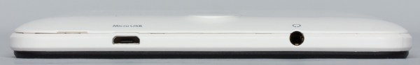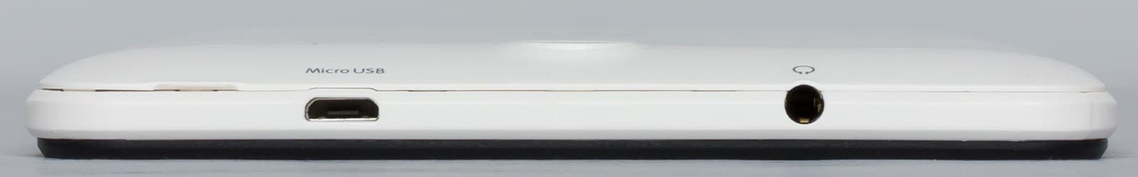 Micro-USB вынесен наверх, к аудиоразъему (миниджек 3,5 мм). Из функциональных элементов внизу имеется только микрофон. Ход у механических кнопок нечеткий, они люфтят, но расположены удобно.