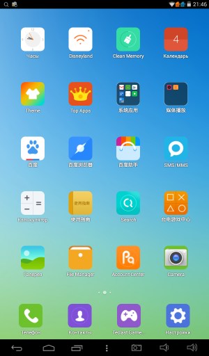 Планшет Teclast X70 3G поставляется с операционной системой Google Android 4.4.4. Она напичкана китайскими приложениями, частично переведена на английский, частично на русский. Если не считать дополнительного софта, то от стандартной версии Android здесь отличий мало. Самые заметные — отсутствие отдельного списка приложений и расширенная нижняя панель с кнопками регулировки громкости и съемки скриншота.