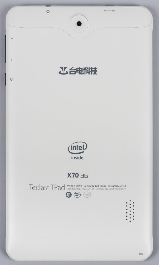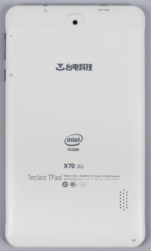 В Teclast X70 3G установлено две камеры: фронтальная, разрешением 0,3 Мп, и тыловая, разрешением 2 Мп (1600×1200). Присутствуют они исключительно для галочки, качество фото низкое.