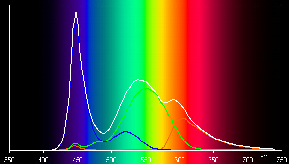 Видимо, светофильтры матрицы существенно подмешивают компоненты друг к другу. Спектры это подтверждают: