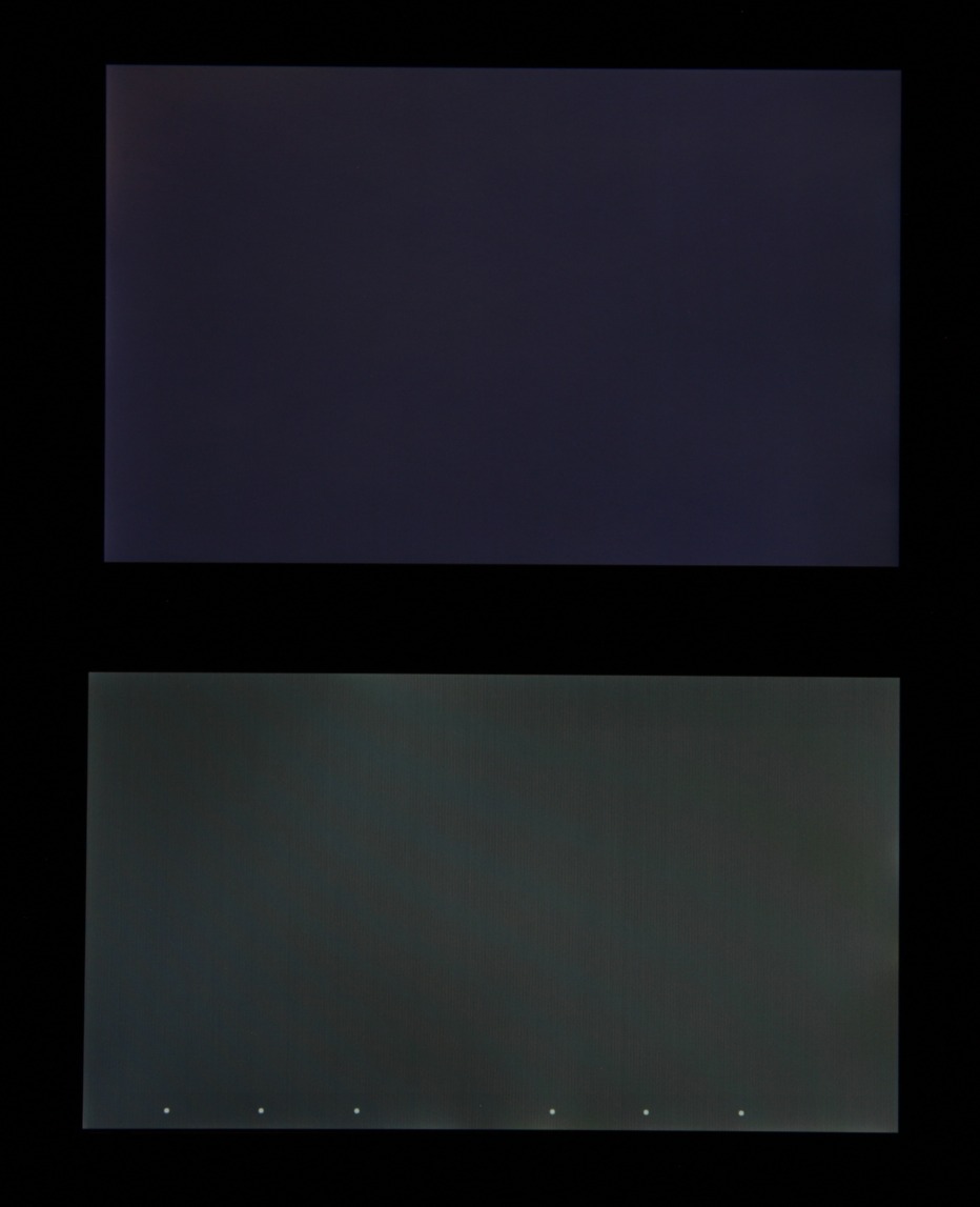 Никакой динамической подстройки яркости подсветки в соответствии с характером выводимого изображения мы не выявили, что очень хорошо.