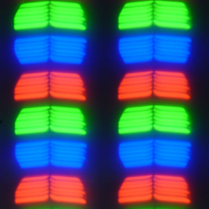 В данном планшете используется матрица типа IPS. Микрофотографии демонстрируют типичную для IPS структуру субпикселей: