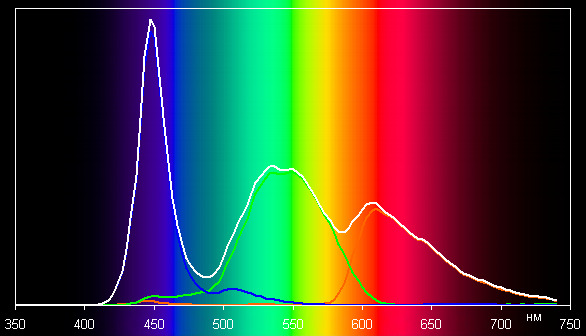 Спектры показывают, что светофильтры матрицы в умеренной степени подмешивают компоненты друг к другу: