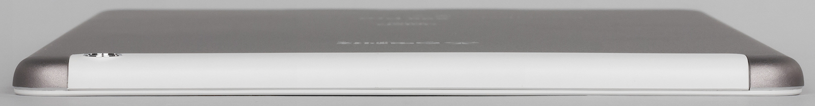 «Корытце» из анодированного алюминия охватывает фронтальную панель. Посередине расставлены логотипы с надписями. Если положить планшет на стол, динамики особо не приглушаются, хотя находятся прямо на задней панели. Качество звука по планшетным меркам среднее, запас громкости чуть ниже.