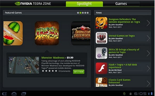 Для доступа к таким играм, NVIDIA запустила Android-приложение Tegra Zone. Это специализированный аналог Android Market, в котором можно скачать оптимизированные для Tegra приложения. Приложение Tegra Zone удобно тем, что собирает все улучшенные игры под одной «крышей», позволяя с лёгкостью найти, приобрести и играть в игры, предназначенные для устройств на базе чипов Tegra. Приложение позволяет познакомиться с интересующими играми по описаниям, скриншотам высокого разрешения, видеороликам, обзорам игр и пользовательскому рейтингу.