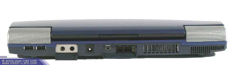 На заднем торце — группа разъемов, отвечающих за "контакт с внешним миром" , а также вентиляционные решетки. Там расположены (слева направо):