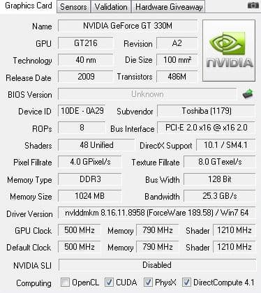 Также посмотрим на данные о видеокарте.
