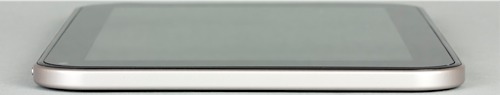 Очень симпатично выглядят и грани устройства (хотя они и не из металла, а из пластика — впрочем, выкрашенного под металл). Кроме того, стоит отметить два бросающихся в глаза динамика на нижней грани. Между динамиками — проприетарный док-разъем (через него планшет заряжается и синхронизируется с компьютером).