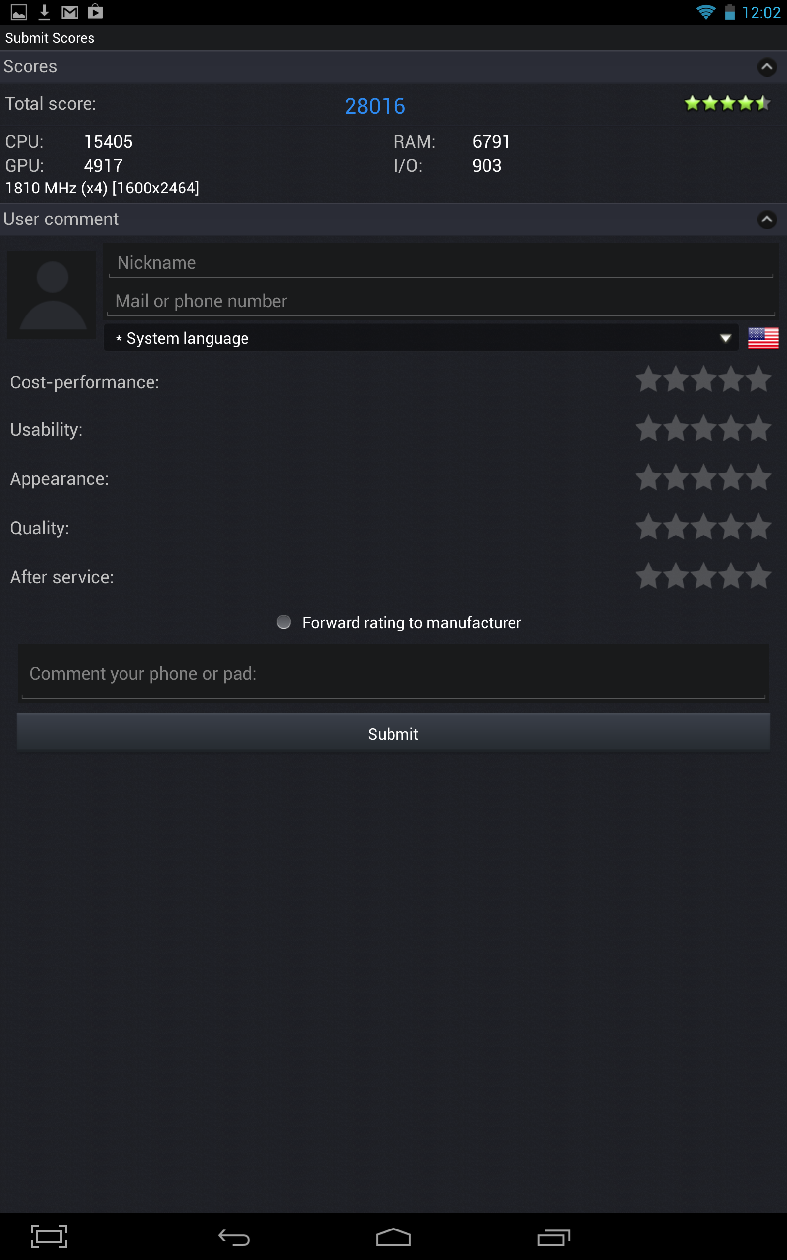 Перейдем к комплексным Android-бенчмаркам: Quadrant Advanced Edition и AnTuTu Benchmark.