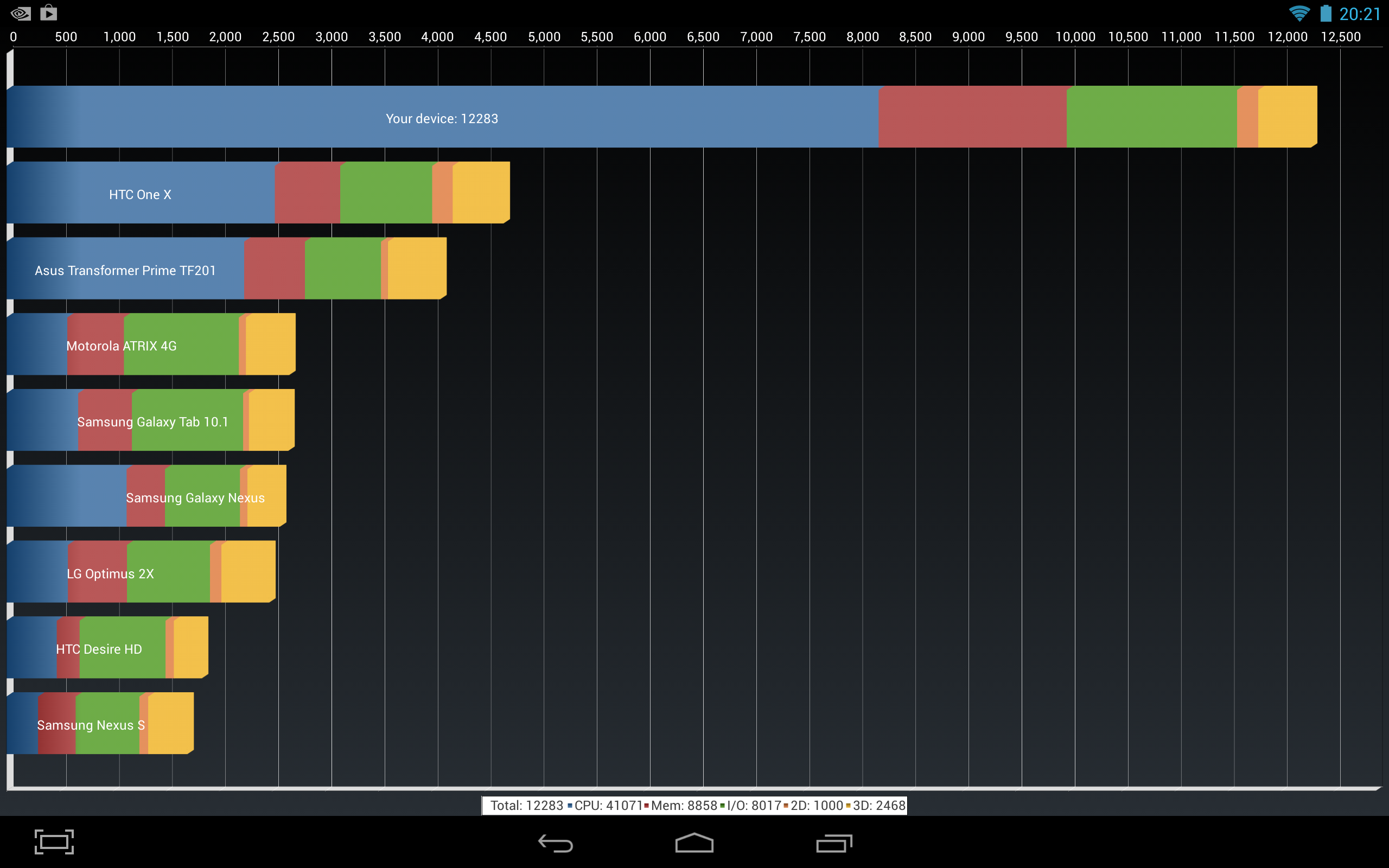 Здесь картина еще более наглядная: Tegra 4 в два раза обгоняет ближайшего конкурента, а отрыв от NVIDIA Tegra 3 — и того больше: почти в три раза!