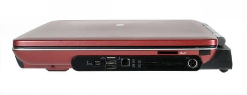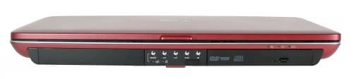 Справа находится точно такая же внешняя панель, на которой тоже собраны разъемы. Слева направо: разъем IEEE1394, два порта USB 2.0, модемный порт, два отсека PCMCIA. Наконец, последним идет выход S-video. Вне панели, над слотами PCMCIA, находится слот картовода SD. А справа, вне панели, расположен основной ИК-порт.