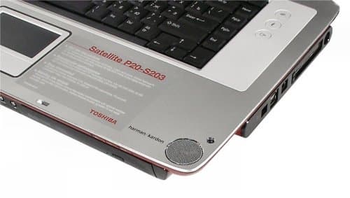 Со звуковой системой получилась еще одна интересная история. В Р20 установлены динамики давнего партнера компании — Harman / Kardon. Колонки расположены необычно: в углах клавиатурной панели. И менно в этом ноутбуке колонки, наверное, лучше было бы встроить в переднюю панель и направить вперед. Хотя внутри сами динамики наклонены вперед, т.е. звук должен идти туда, куда нужно, если человек сидит в кресле и смотрит фильм на ноутбуке, стоящем перед ним на столе (ну и музыку послушать во время работы, опять же, очень удобно).