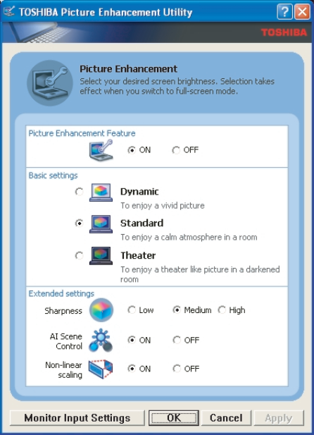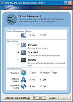 На скриншоте приведен вариант настройки с использованием TOSHIBA Picture Enhancement Utility.