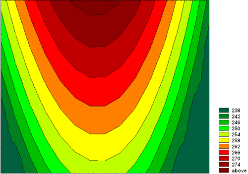 Поверхность, построенная по значениям контрастности. Изолинии через 10 единиц