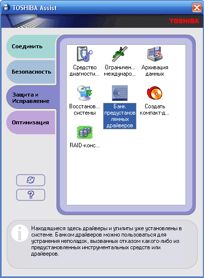 - Служебные программы и драйверы Toshiba