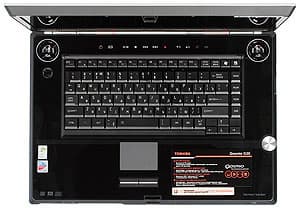 Что же касается самой клавиатуры, то она "всетошибовская". Похоже, компания решила использовать одну клавиатуру на всех моделях. Ничего страшного здесь нет, так как клавиатура достаточно удачная. Могу повторить, что враскладке лично мне понравилось расположение клавиш Ins и Del справа от пробела, зато не понравился сам укороченный "пробел". Индикатор Caps Lock традиционно для ноутбуков Toshiba находится непосредственно на клавише, а индикаторы Scroll Lock и Num Lock — на вставке, отделяющей ряд функциональных клавиш.