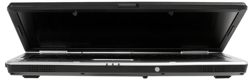 Спереди — динамики, защелка крышки, индикаторный блок и кнопка отключения беспроводной сети.