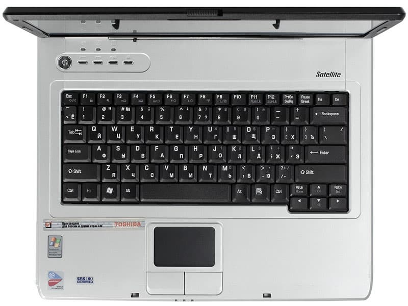 Мои предположения о том, что компания Toshiba использует одну клавиатуру на всех моделях, не подтвердились — здесь клавиатура другая. Пробел стал длиннее, индикатор Caps Lock исчез с одноименной кнопки. Одновременно пропал и правый столбец клавиш, а Ins и Del переехали на стандартное место — в правый верхний угол клавиатуры. Честно говоря, у меня возникла мысль, что компания, не утруждая себя разработкой модели, просто ставит свой лейбл на продукцию какого-либо китайского сборщика. Уж очень это не похоже на Toshiba.
