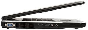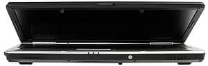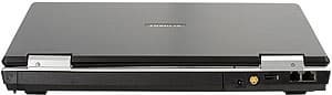 Что касается дизайна, то каких-то изысков от дешевой модели ожидать сложно. Корпус пластиковый, но качество пластика вполне приличное. Большая часть заднего торца занята аккумуляторной батареей. Справа от нее — разъем для подключения источника питания, выход на ТВ, порт USB, разъемы для подключения к локальной сети и телефонной линии. Расположение порта USB не очень удобное, но для оперативного подключения устройств он и не предназначен — для этого есть еще два порта сбоку.